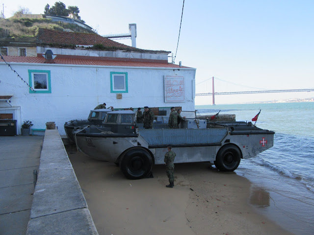 Próximo da hora do almoço, olhei o Tejo e descobri junto à Boca do Vento umas embarcações estranhas a navegarem muito próximo da Margem Esquerda. Pareceram-me logo veículos anfíbios, semelhantes aos velhos "lark's" dos fuzileiros.